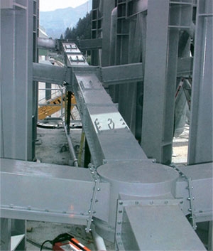 斜槽主要構(gòu)件是透氣層,本系列設(shè)計中采用的柔性厚型板式合成纖維織物,是一種新型透氣層,它具有耐高溫(可達(dá)150℃)耐腐蝕,耐磨損,吸濕性低,重量輕,表面平整,使用壽命長等優(yōu)點。透氣層無需現(xiàn)場安裝,每節(jié)槽體由制造廠組裝后,現(xiàn)場對接起來即可,這樣既減少了安裝工作量,又保證了質(zhì)量。