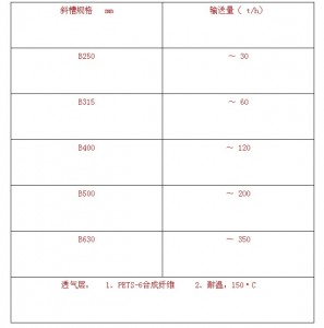 2、輸送量:斜槽的輸送量受很多因素的影響,往往變化很大。我們根據(jù)理論計算、國內(nèi)外參考資料、現(xiàn)場調(diào)查綜合分析,在安裝角度為6·時推薦下列數(shù)值供選用者參考。